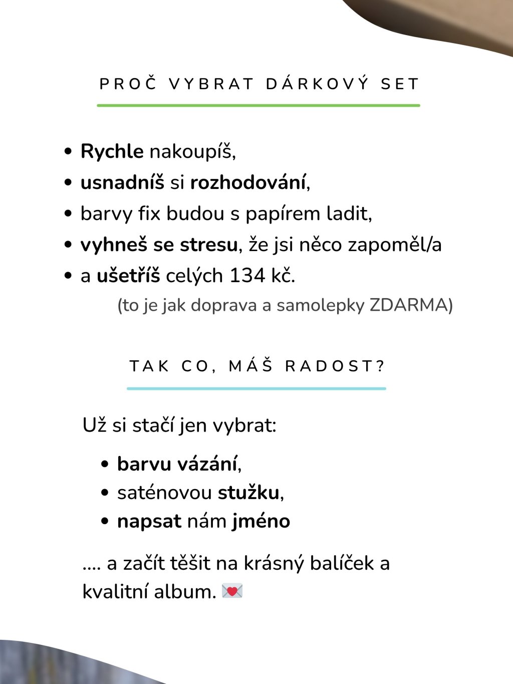 - Po schválení vyrábíme, sestavujeme a celý dárkový balíček posíláme. 🚚