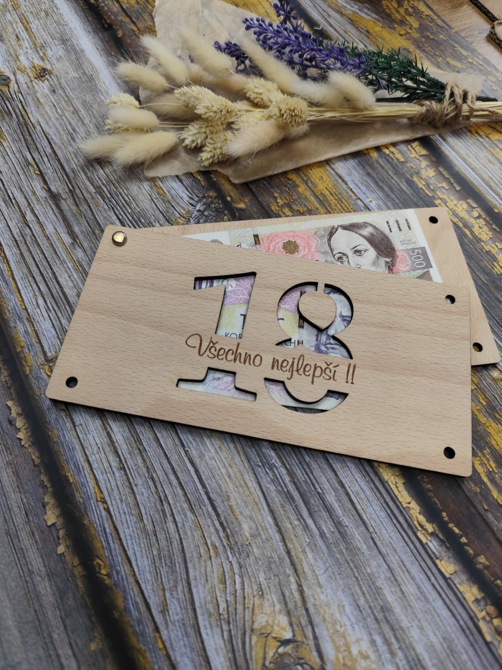 S touto dřevěnou obálkou na peníze se každý dar stane nezapomenutelným zážitkem. Nejen, že obálka skvěle vypadá, ale také přináší nový rozměr darování peněz.