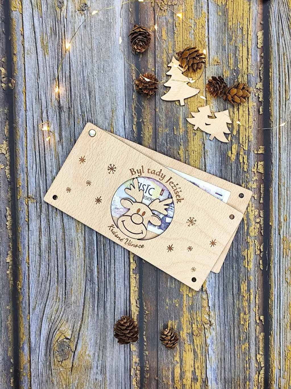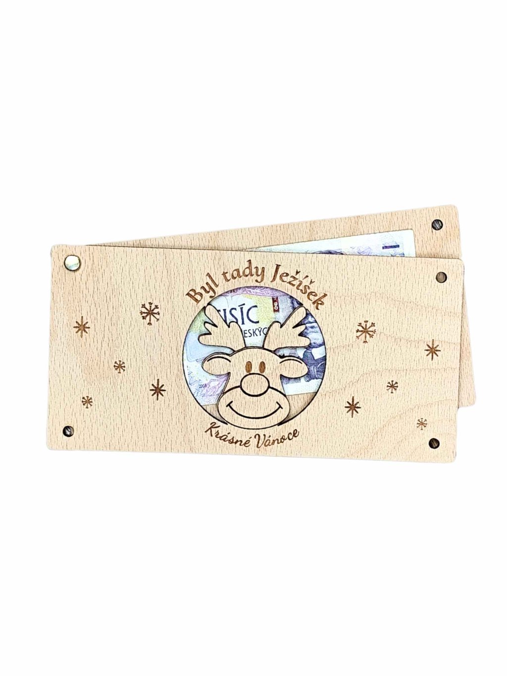 Tato dřevěná obálka na peníze s vtipným nápisem je skvělým příkladem toho, jak může být darování peněz vtipné a elegantní zároveň.