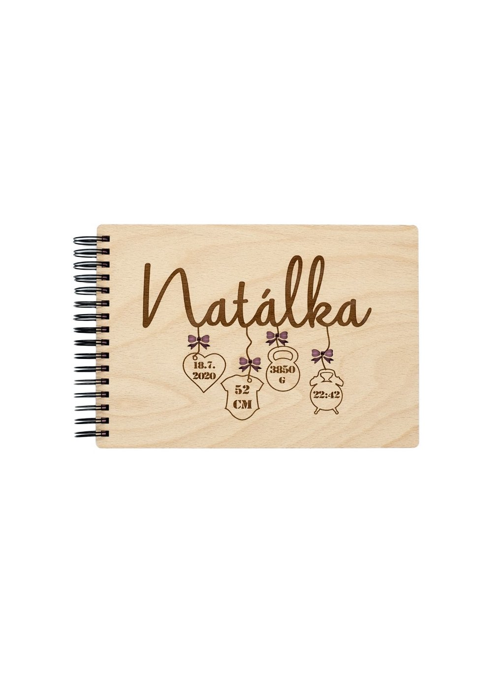 DĚTSKÉ DŘEVĚNÉ FOTOALBUM – S údaji o narození