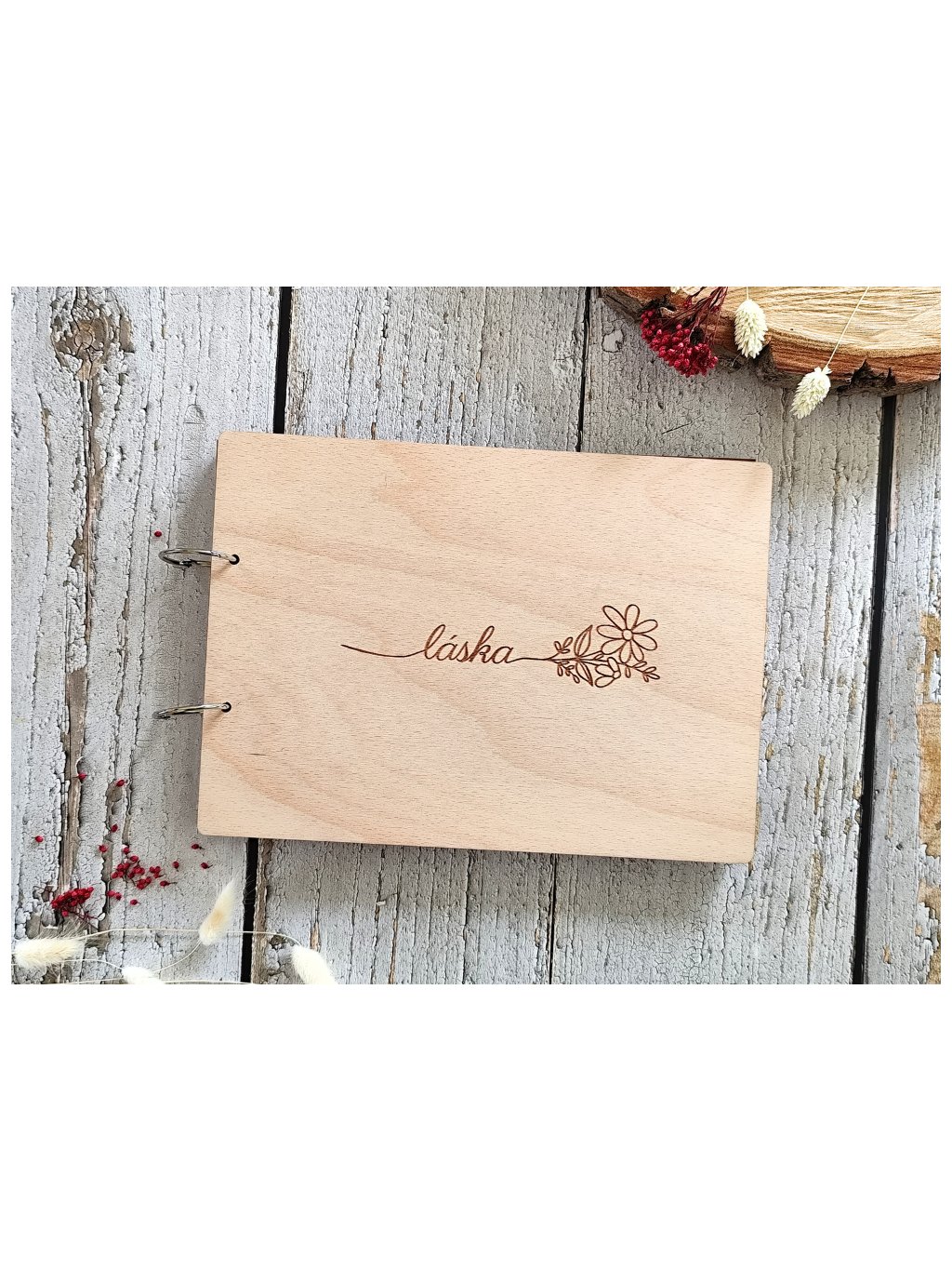Dřevěné album "Příběh lásky" je připomínka, že opravdové vztahy jsou jako květina: rostou pomalu, mají své cykly, ale když se o ně staráš, rozkvetou do něčeho krásného a jedinečného.
