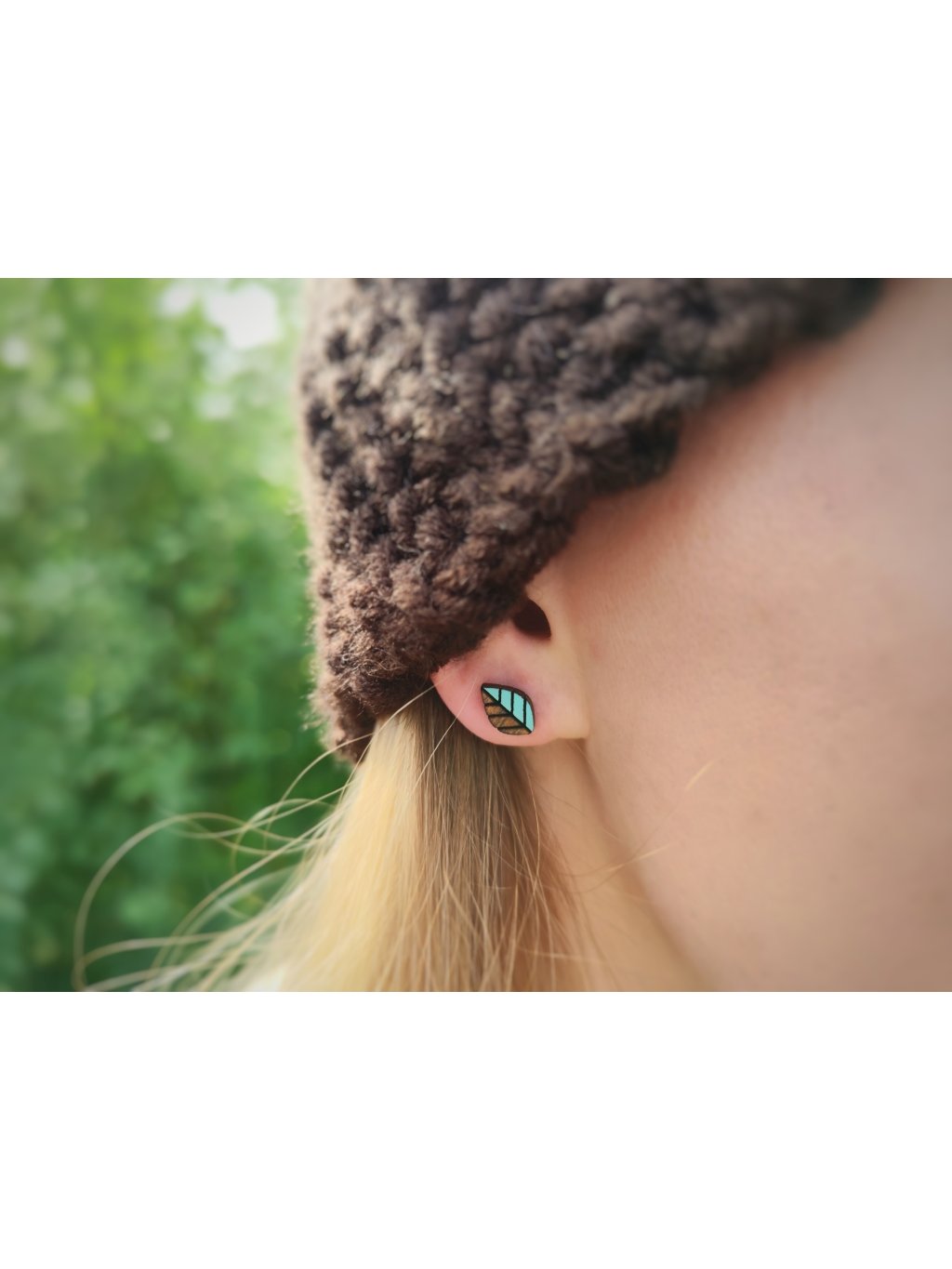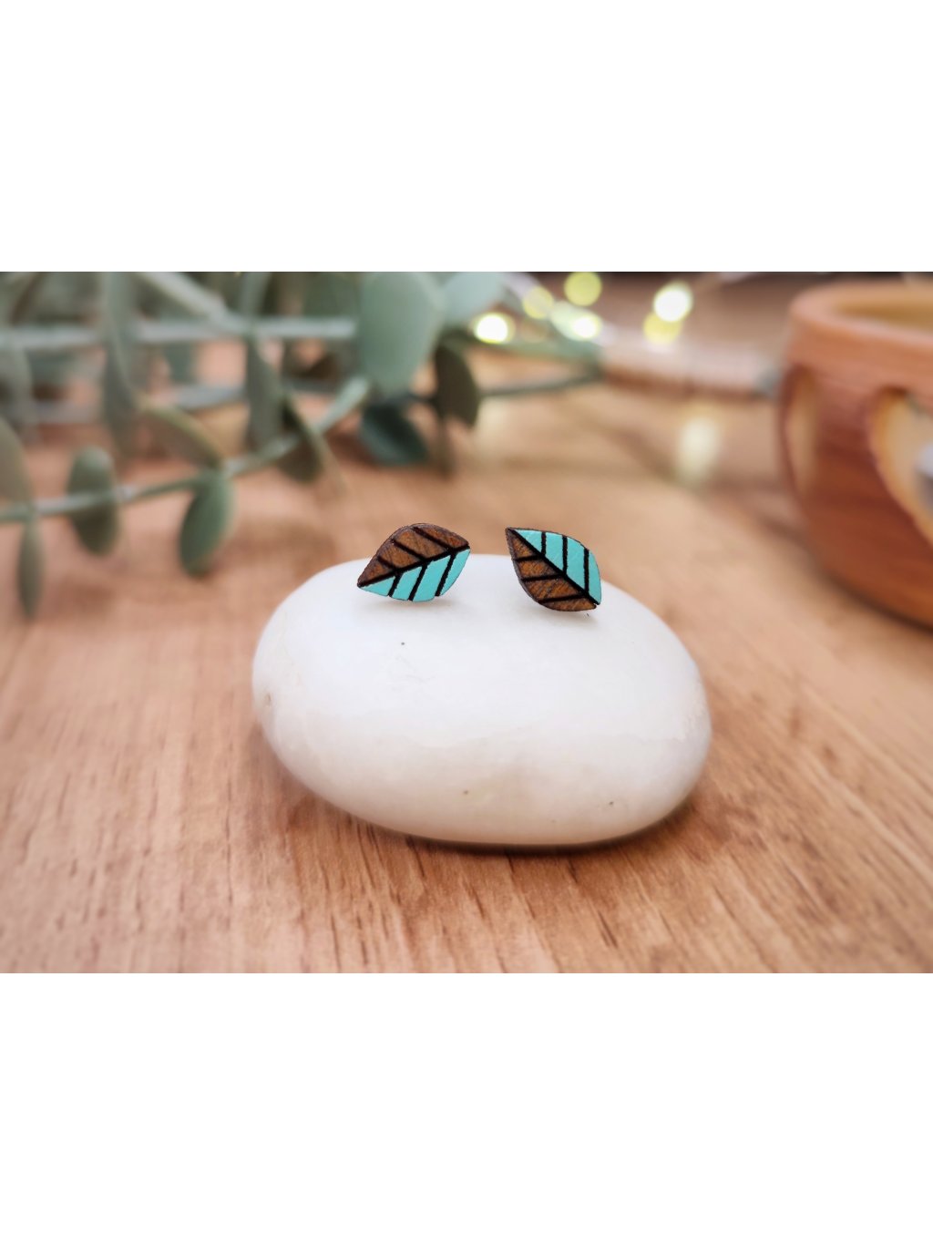 Dřevěné náušnice Leaves turquoise