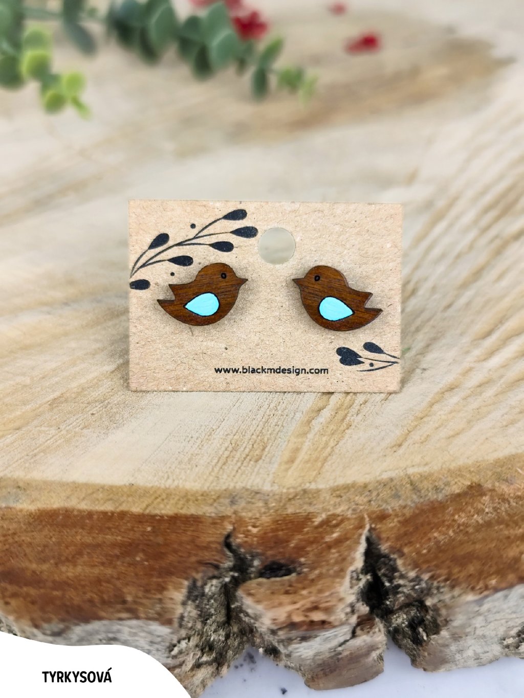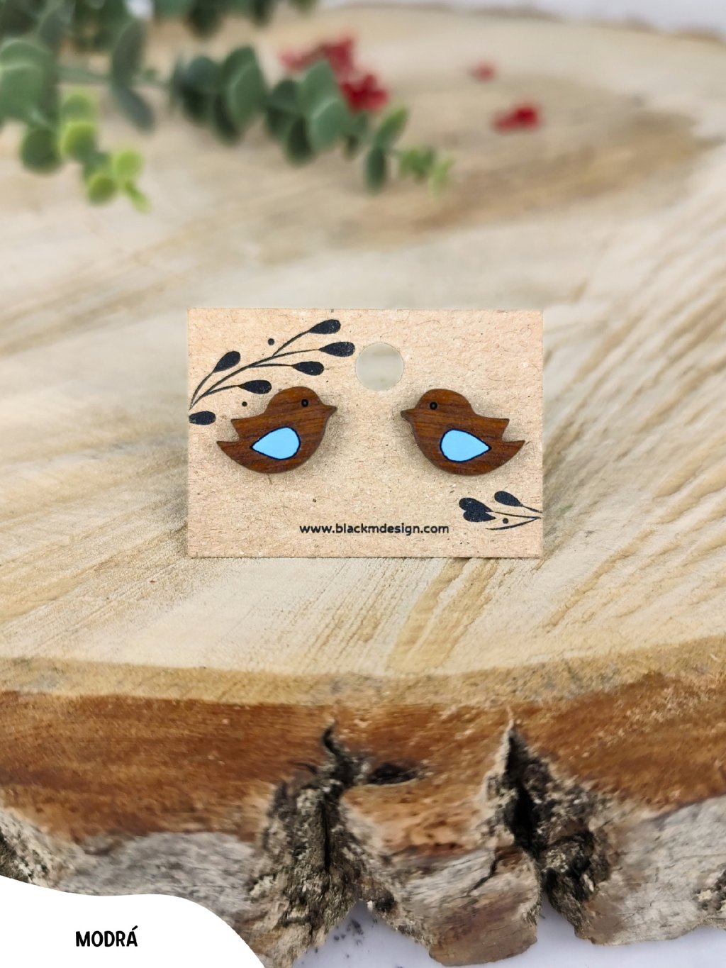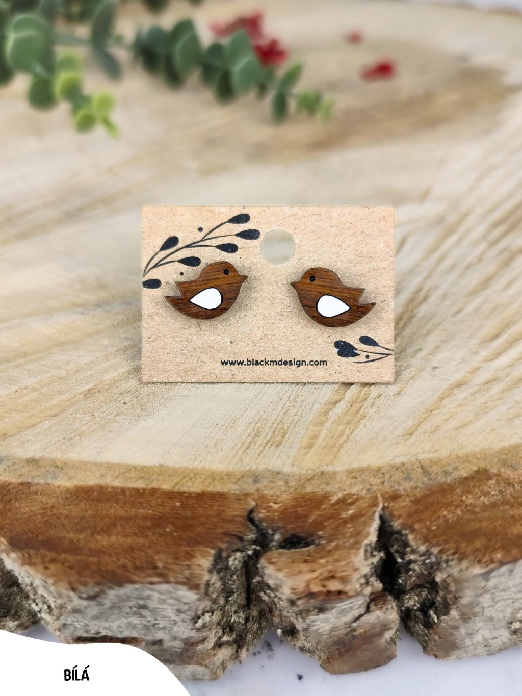 Dřevěné náušnice Ptáček – Bold