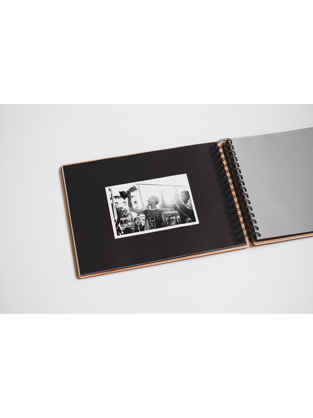 Každé fotoalbum má uvnitř 25 listů tvrdého papíru (220g), album má tedy 50 stránek. Na výběr je černý nebo bílý vnitřní papír.