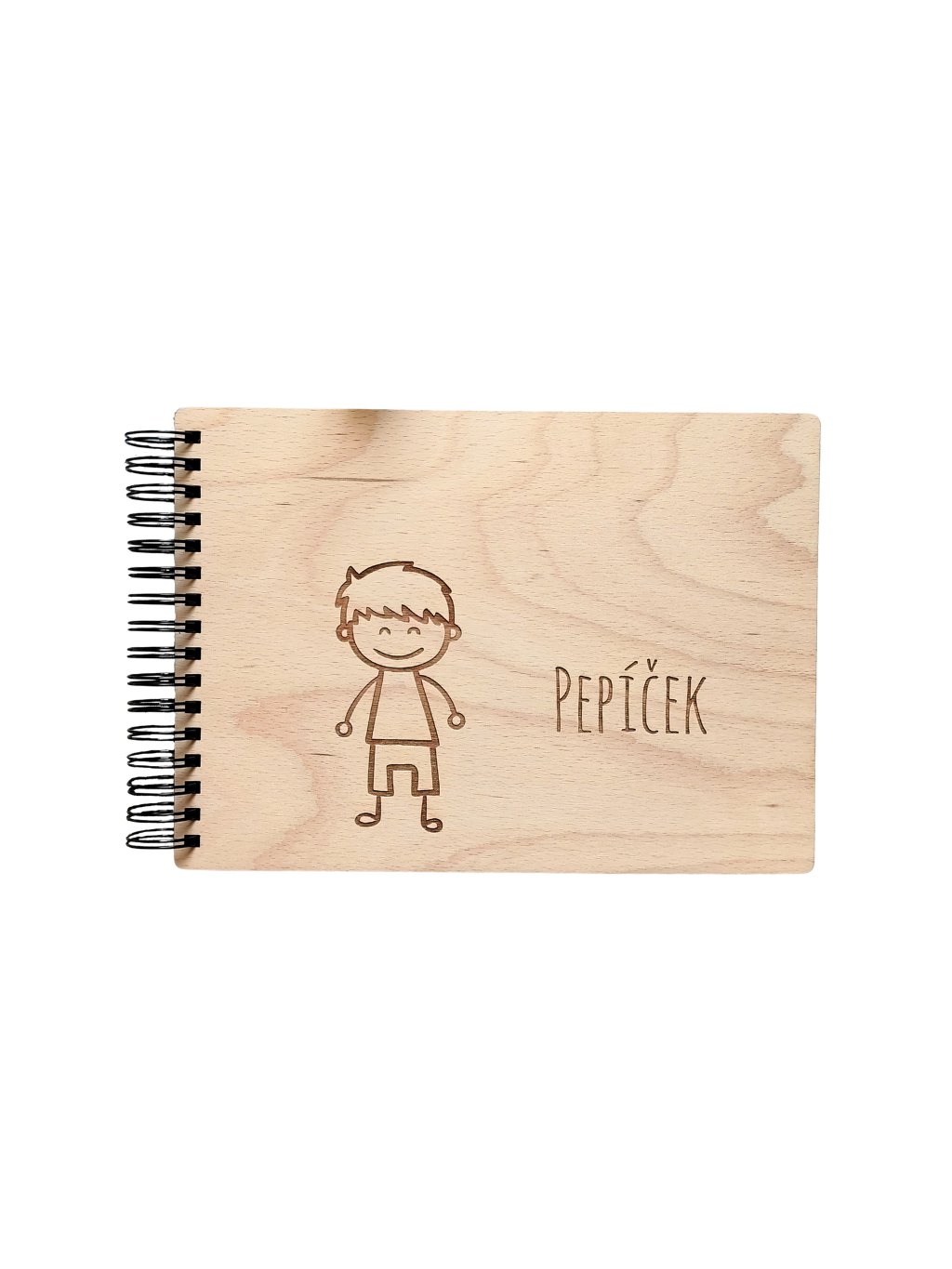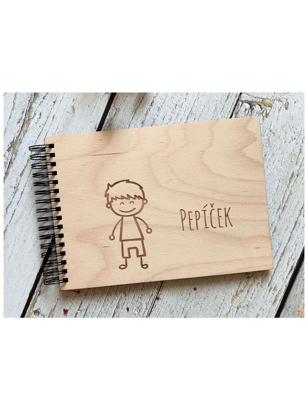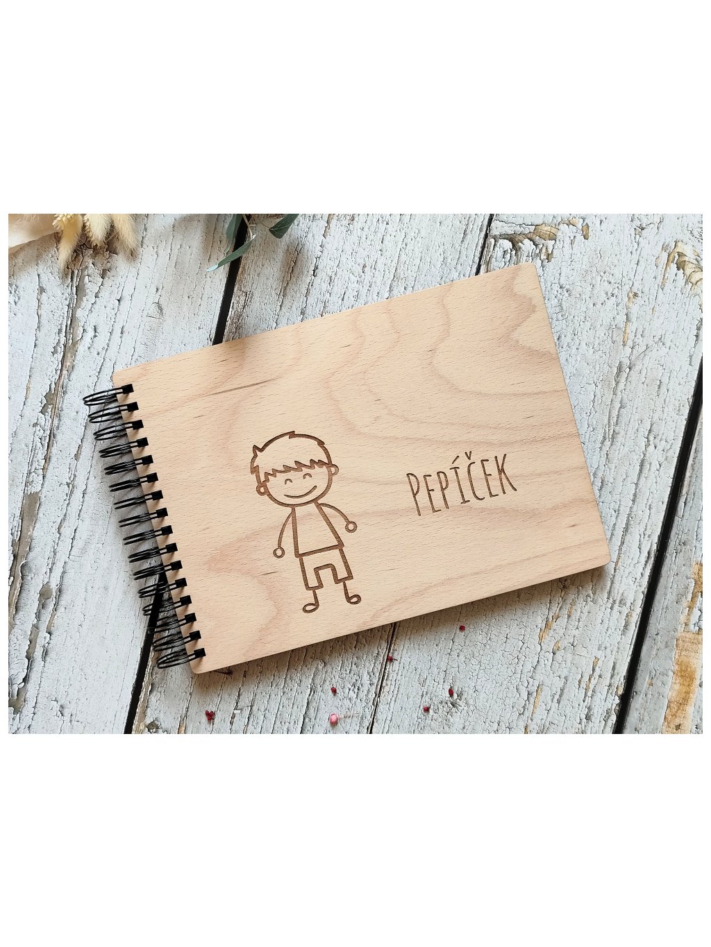 Dřevěný album s motivem chlapečka je přesně to, co chceš mít po ruce, až budeš jednou ukazovat „jak malej rostl jako z vody“.