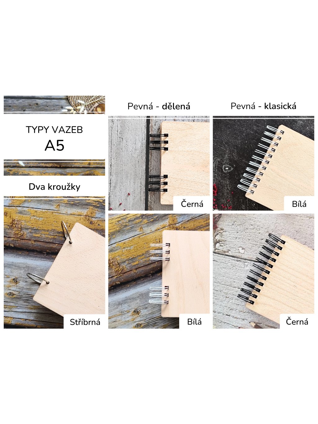 Všechna naše alba drží kovové hřbety. Můžeš si vybrat buď dva doplňovací kroužky, nebo pevnou vazbu – dělenou, nebo klasickou (viz produktové obrázky).